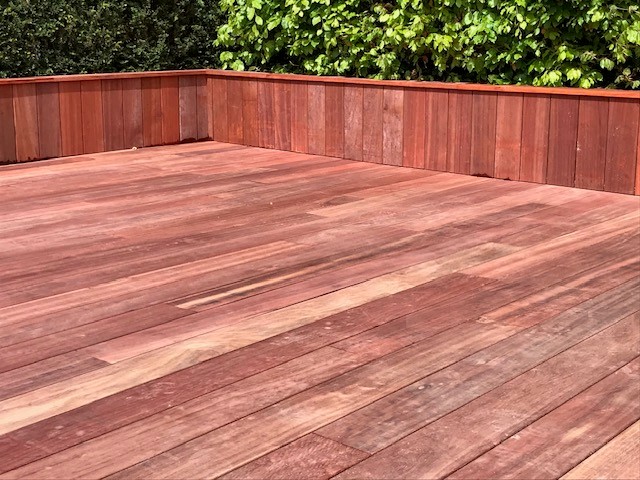 Om je buitenruimte naar een hoger niveau te tillen, kan je een terras uit hout, pvc of composiet laten aanleggen. Qua houtsoorten gebruiken we geregeld ipé en padoek. Die zijn karaktervol en kunnen bovendien tegen een stootje.
